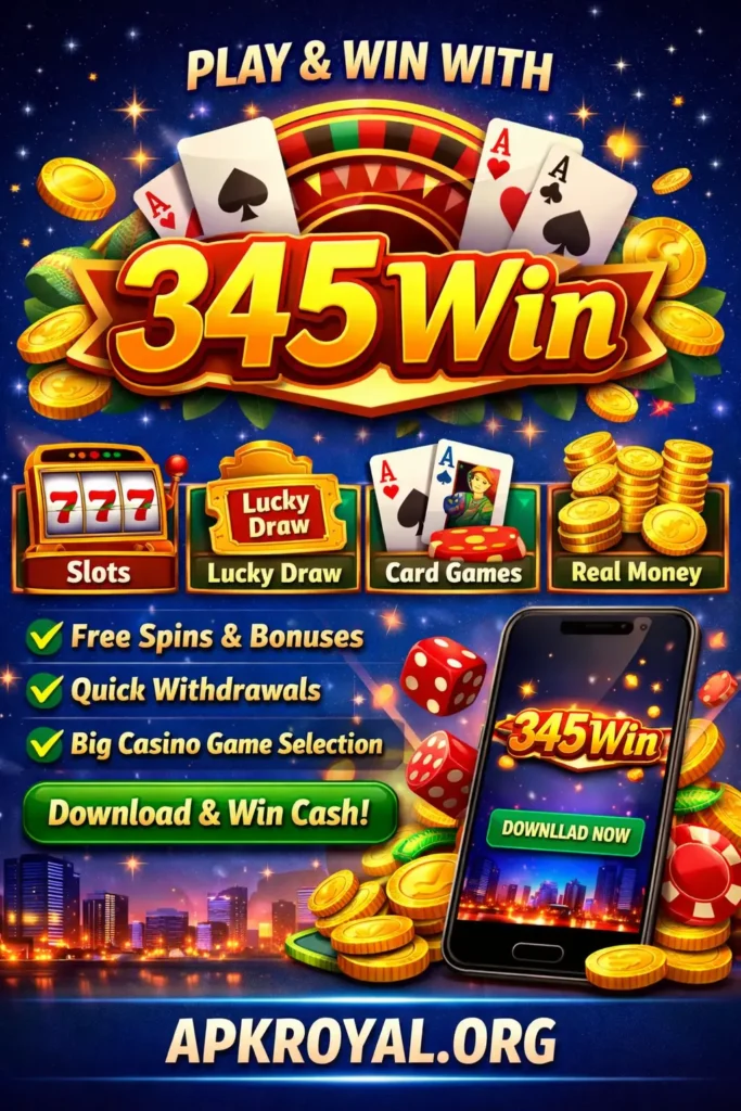 The 345Win game is an online casino platform that allows players to enjoy a wide range of casino games directly from their smartphones or computers. It offers entertaining options such as slot games, color prediction games, card games, and other popular casino favorites. This platform is designed for players who want both fun and the opportunity to earn real money.