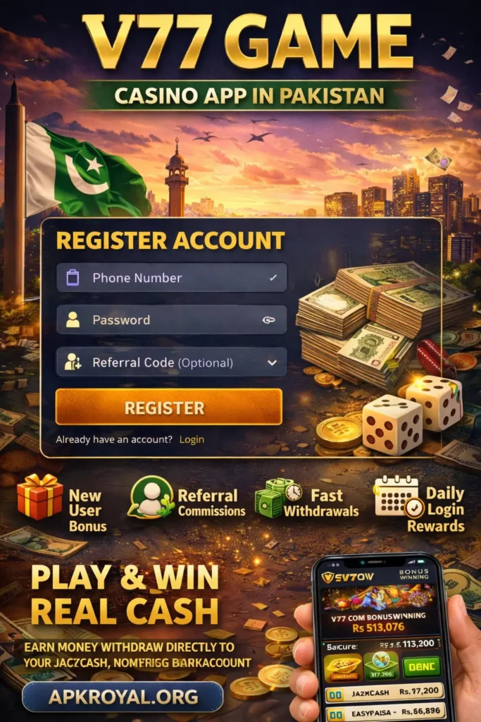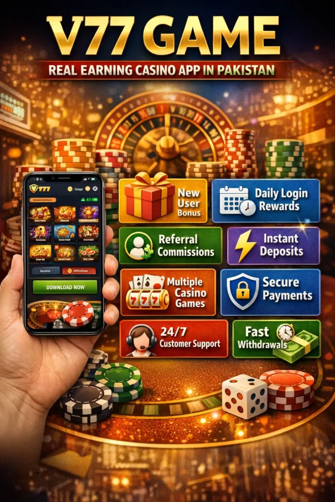 The V77 Casino Game offers a combination of entertainment, bonuses, referral income, and smooth gameplay in one mobile platform. With local payment support and fast withdrawals, it has gained popularity among Pakistani players.